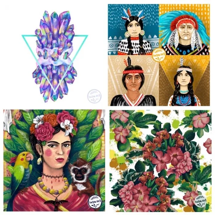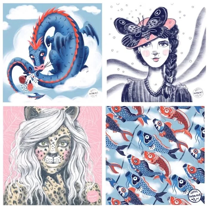 So far, I can say my style is semi-realistic, bright and illustrative with lots of details. I enjoy drawing faces and different characters, floral and botanical illustrations, animals and children. I also sometimes like to create abstract designs playing with colors and texture. As well, conversational patterns are very attractive to me since they contain some meaning.